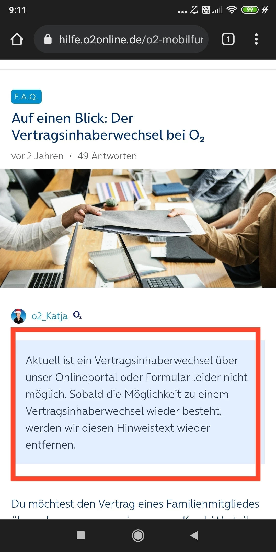 Ich wollte meine 2 Kinder und meine Frau zu O2 holen und selbst für meine 2 Wohnung noch einen O2 Kabelvertrag machen (hab ich gemacht aber da versagt O2 gerade auch auf ganzer Linie…seit 19 Tagen ihne Internet).