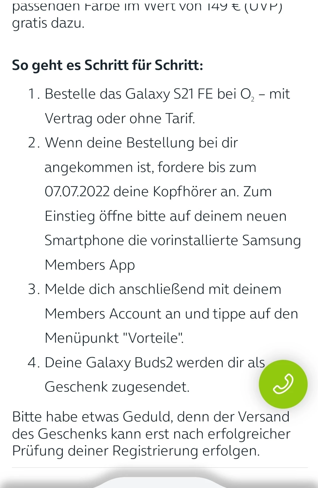 Ich habe mich für einen Vertrag mit einem Handy von Samsung S21FE entschieden wo laut Tarif auch Buds bei sein sollen.