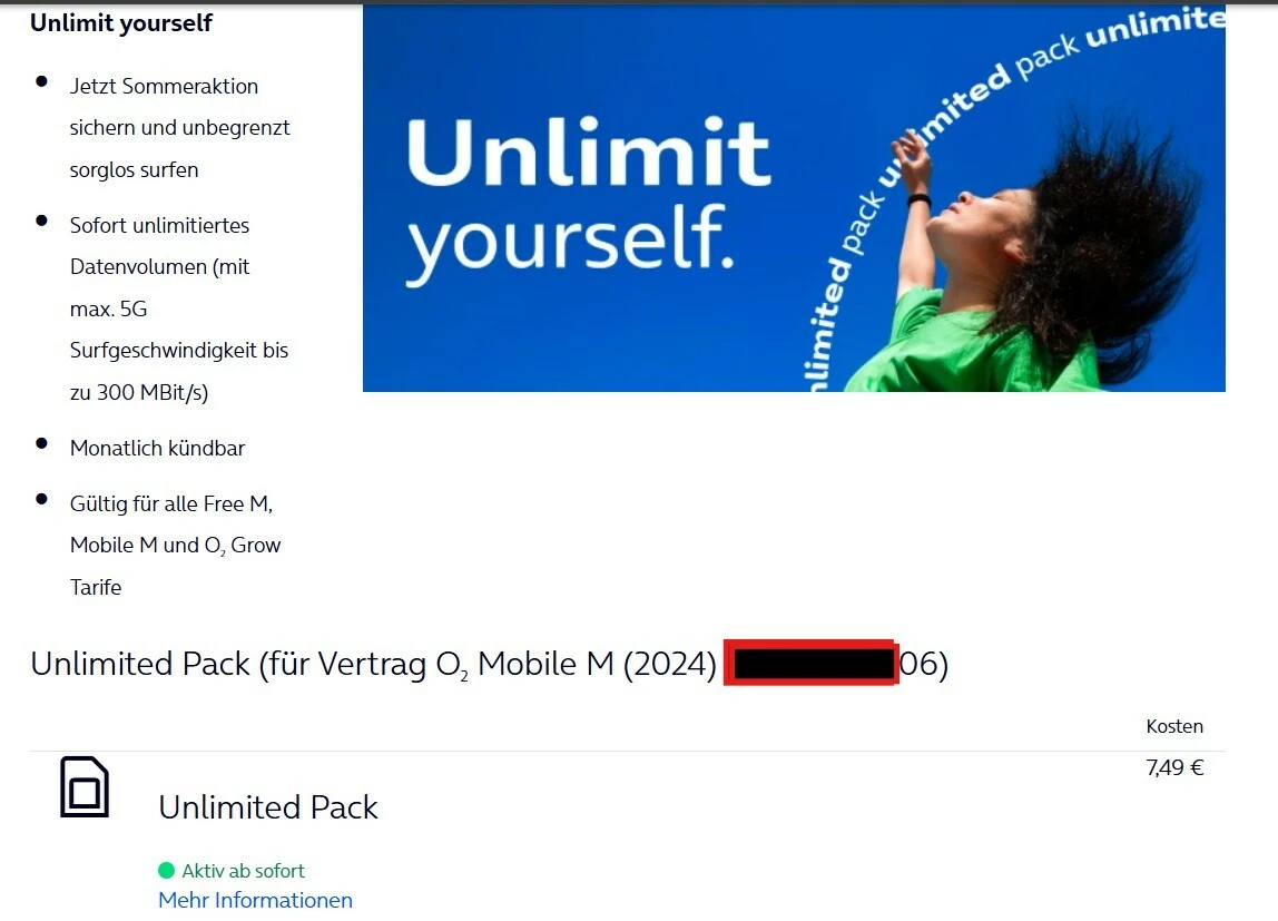 Entsprechend der Transparenzverordnung möchte ich dich auf unser "Produktinformationsblatt o2 Mobile M (2024)" hinweisen. Dort findest du alle Produktdetails noch einmal aufgelistet (ohne Rabatte).