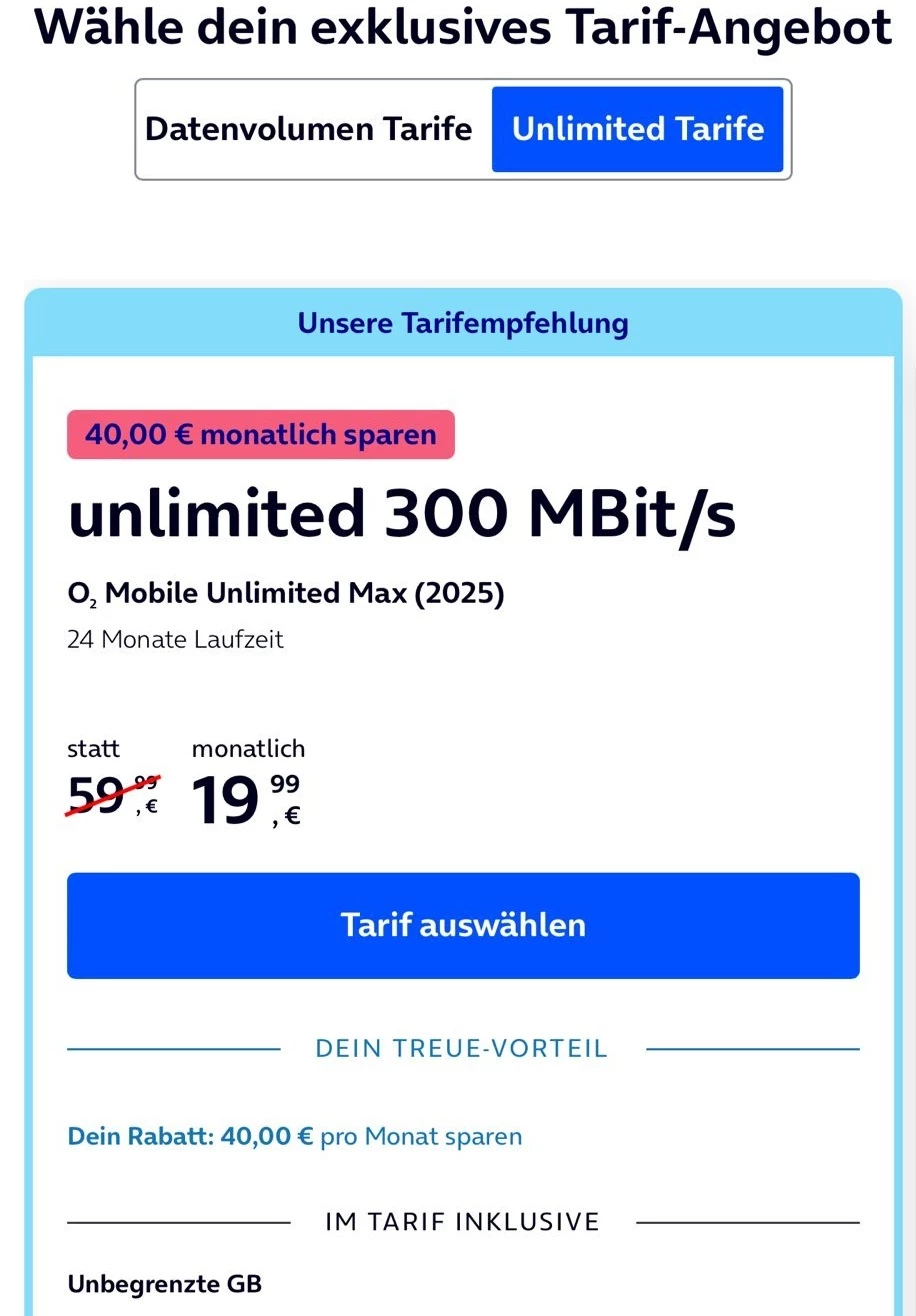 Auch mich hat es mit dem O2 Mobile Unlimited Max (2025) mit 300 MBit/s erwischt.