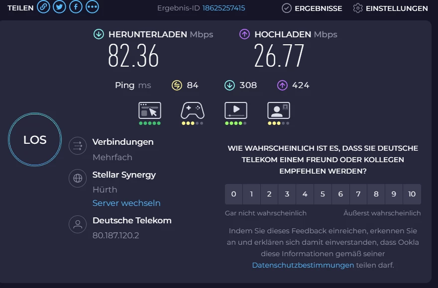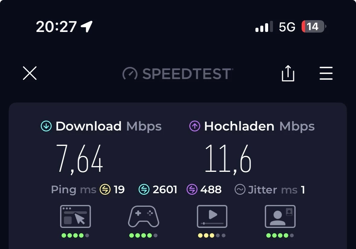 Danke dir für die vielen Informationen inklusive Screenshot einer Messung ​@AnSl 💐 Man fühlt direkt mit, diese Geschwindigkeit bietet eher kein befriedigendes Netzerlebnis.
