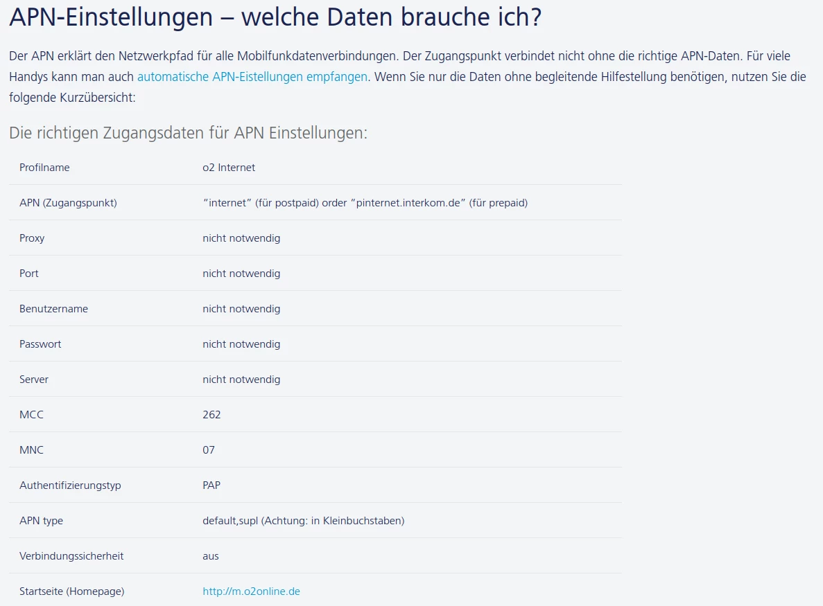 Wie gesagt die normale O2 Karte funktioniert, ohne weitere Einstellungen, nur halt die Datenkarte nicht.