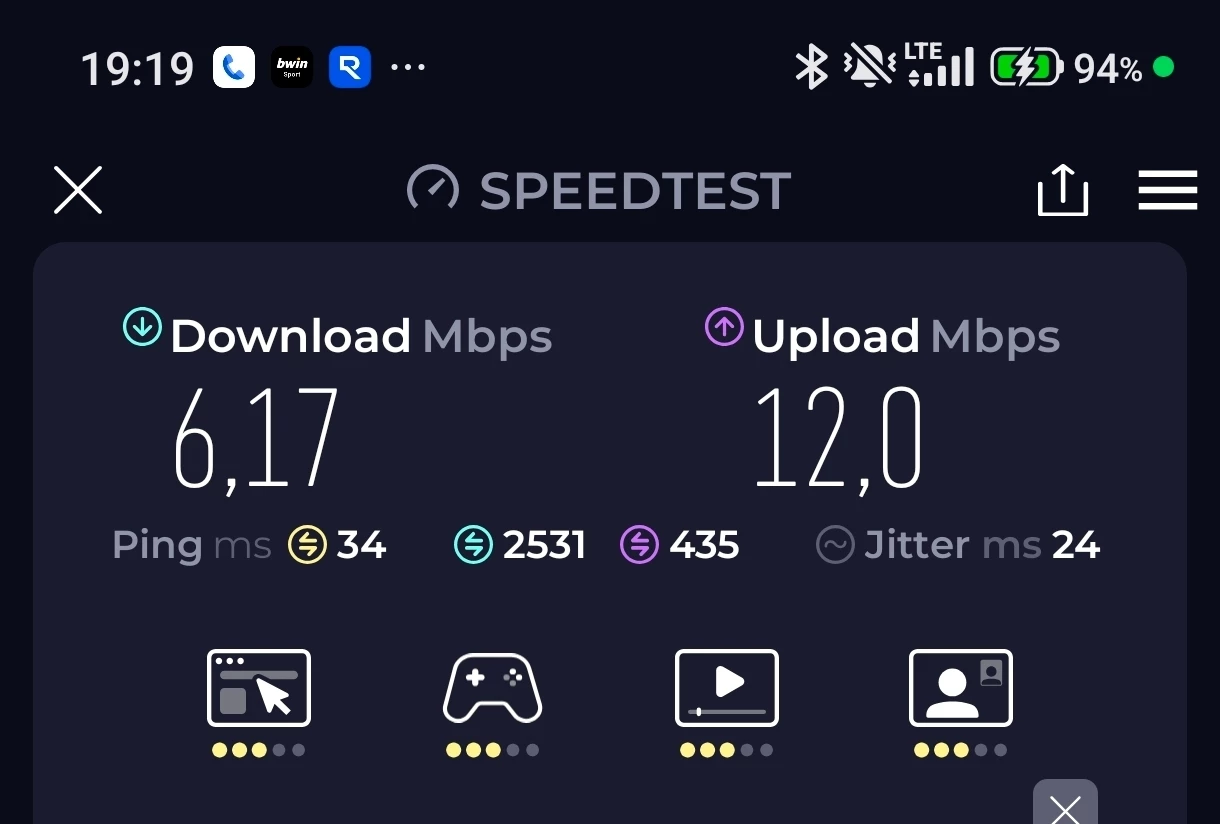 Hallo seit wochen haben meine Familie und ich eine sehr langsame Datenverbindung oft nur 6 mbits. Manchmal gar kein internet. Obwohl wir sonst zu hause immer 80-100 mbits im mobilfunknetz hatten. Es sind 4 Verträge.