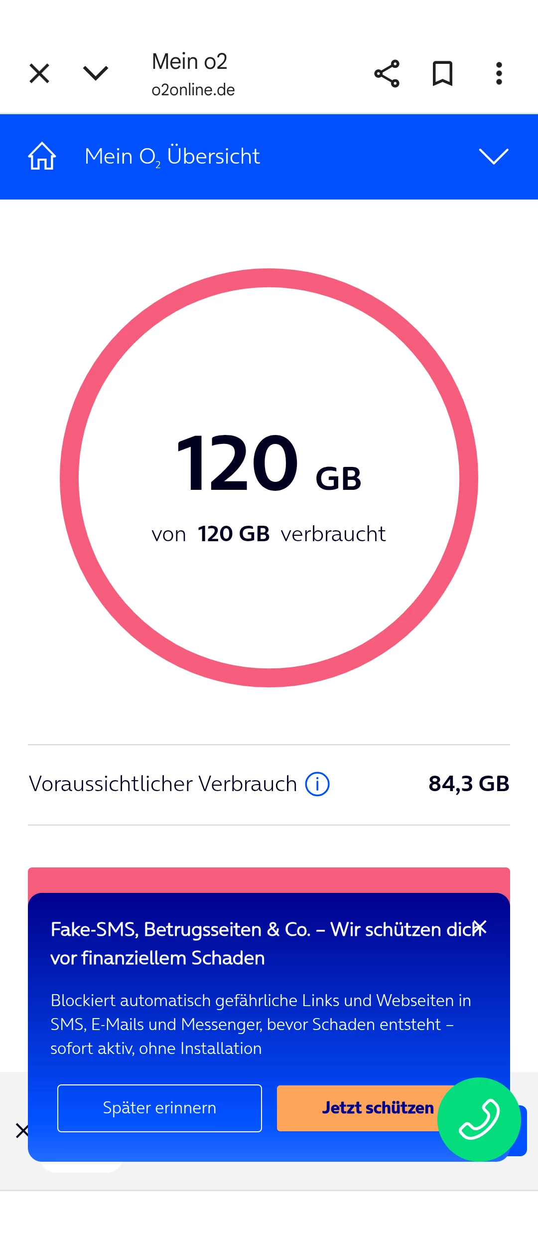 In der App und im Browser werden aber nur **120 von 120 GB** angezeigt, obwohl alle Optionen als "aktiv" markiert sind.