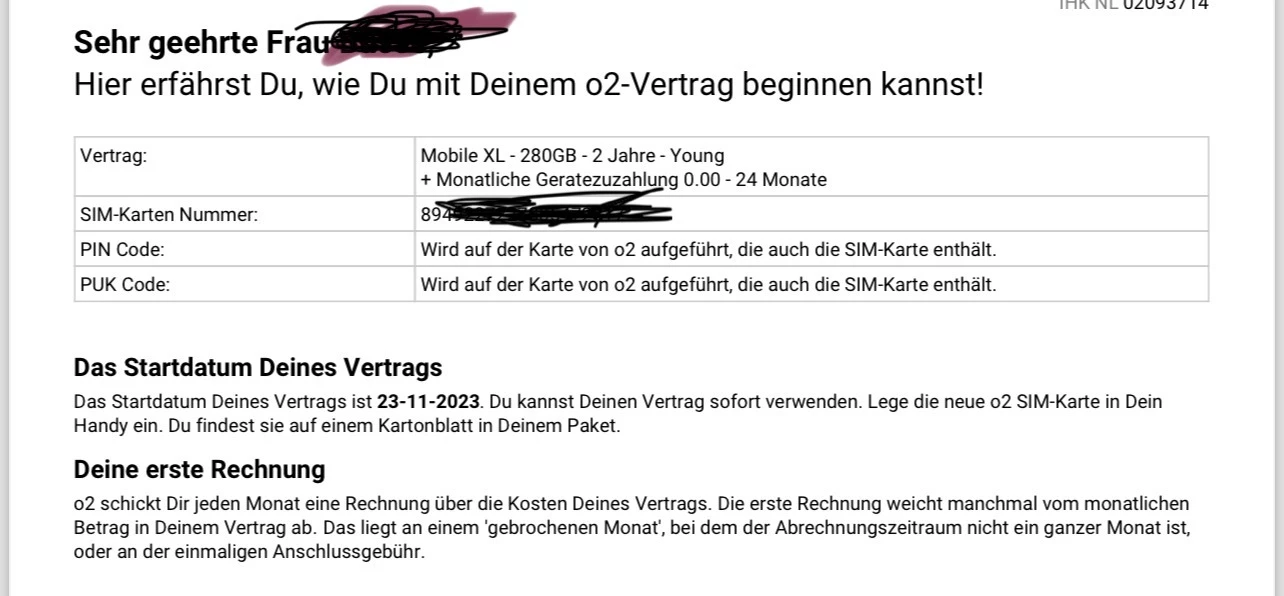 Deine Vertragsanfrage wird durch 02 verarbeitet