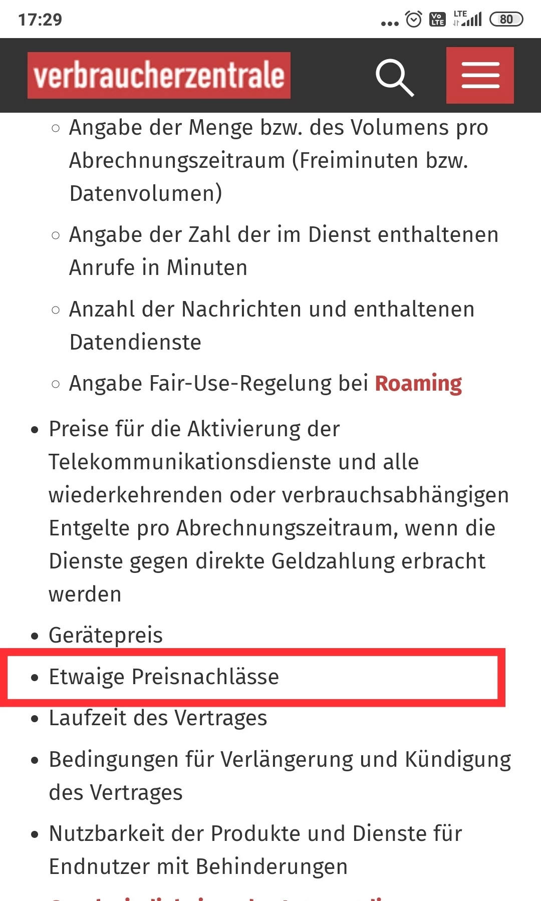 Also ist "Rabatte sind erst später ersichtlich" nicht zulässig.