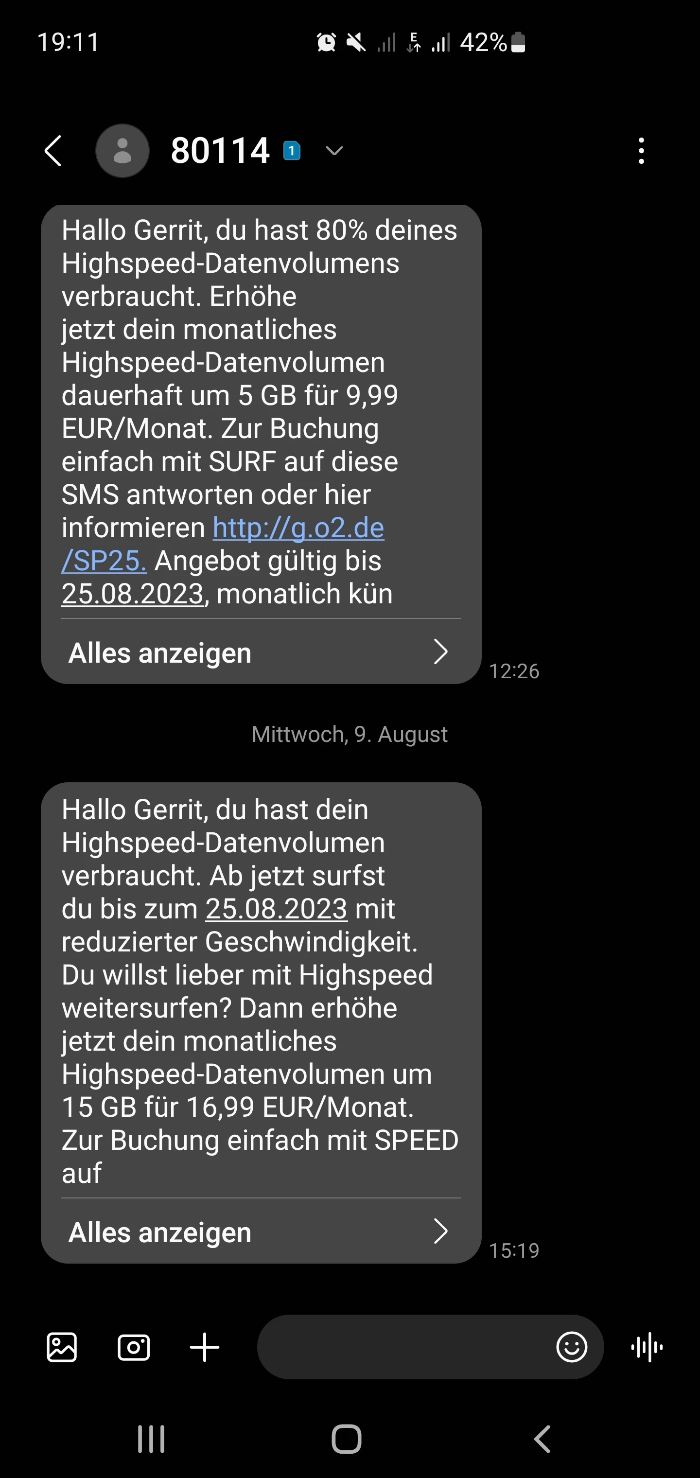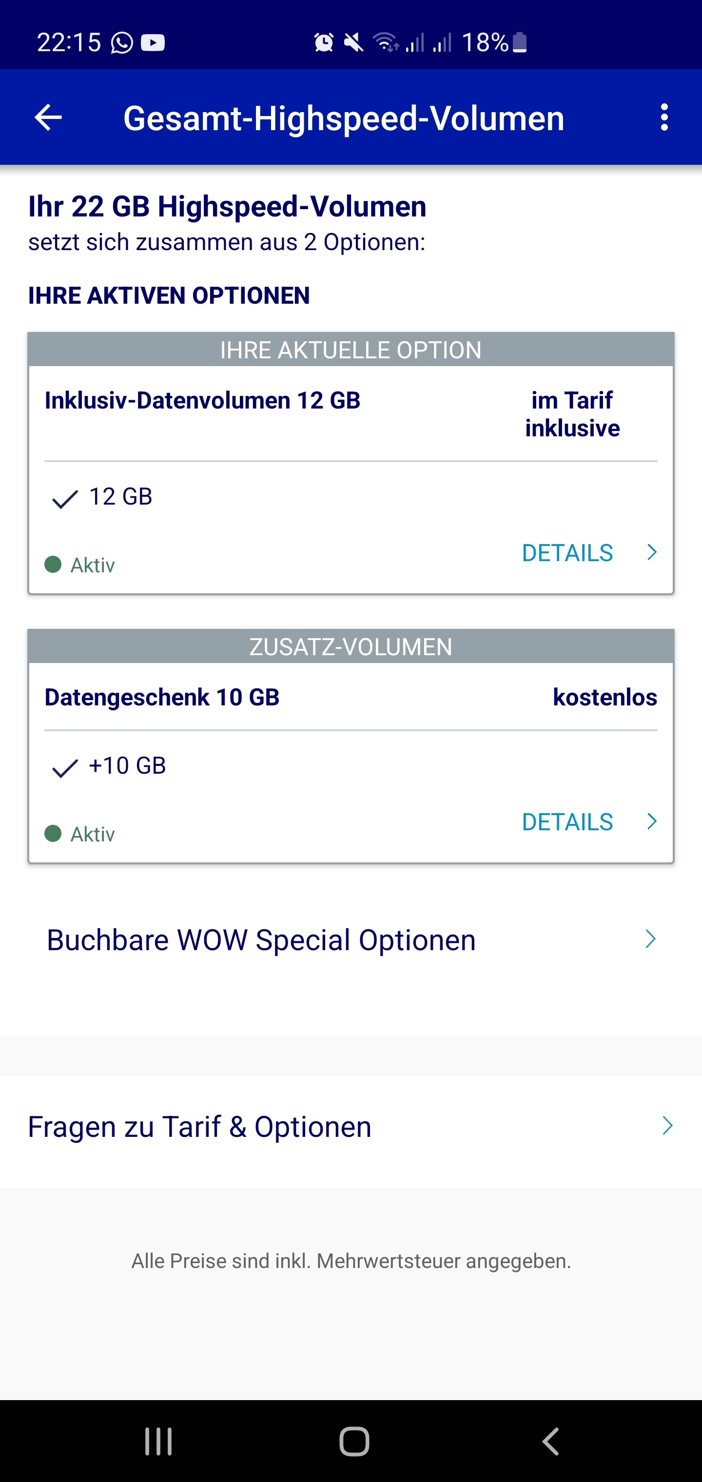 Jetzt habe ich die 12 GB verbraucht, dementsprechend noch 10GB übrig wurde allerdings schon über SMS darüber informiert, dass ich gedrosselt bin. Mobile Daten seitdem kaum nutzbar. Gerade heute wo ich viel unterwegs bin sehr ärgerlich - ich würde gerne meine 10GB nutzen können