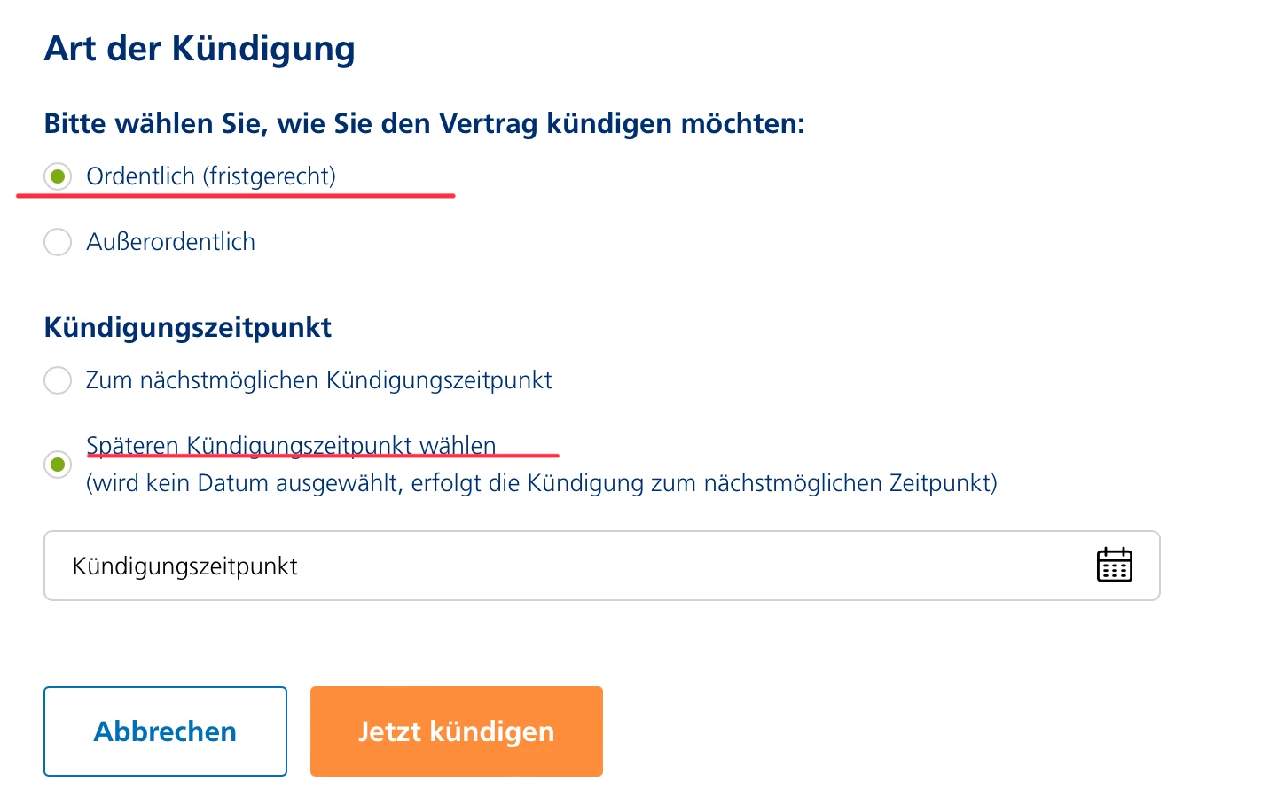 Aber selbst wenn der Grund darin besteht, in ein anderes Land zu gehen. Die Bedingungen meines Vertrags sind klar, ich kann jederzeit kündigen, wenn ich will. Deshalb verstehe ich nicht, warum ich bei der ersten Option so viele Dokumente schicken muss. Ich möchte nur eine normale Kündigung vornehmen.