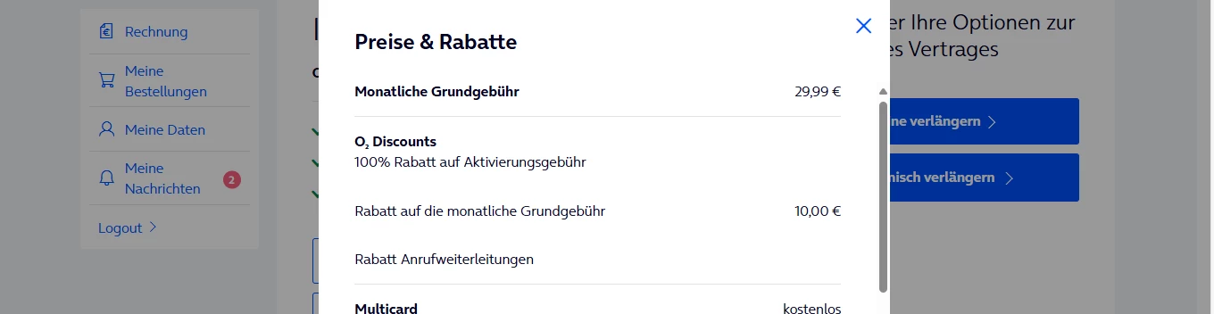 Laut meinem Vertrag, der auch bei My o2 hinterlegt ist, beträgt mein Grundbetrag noch immer 29,99 Euro. Nicht wie auf der Rechnung 31,94 Euro.