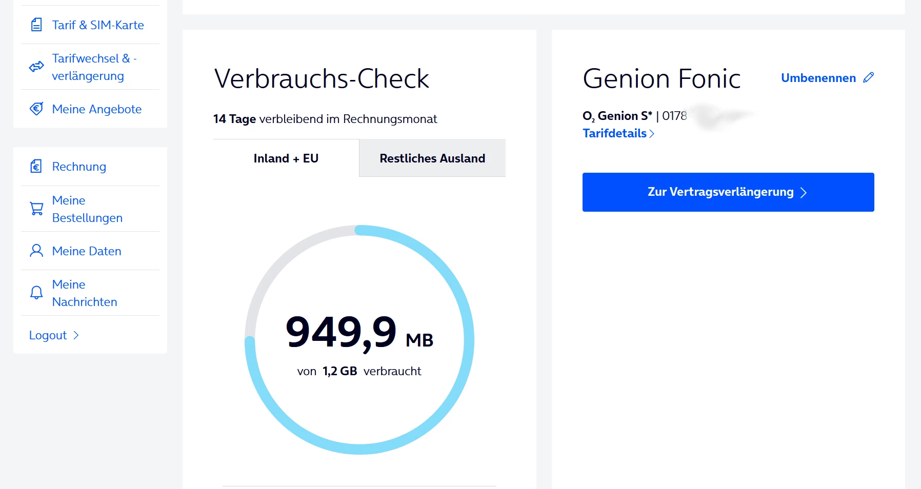 1. Klick auf „Zur Vertragsverlängerung“