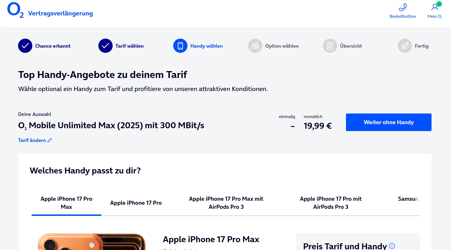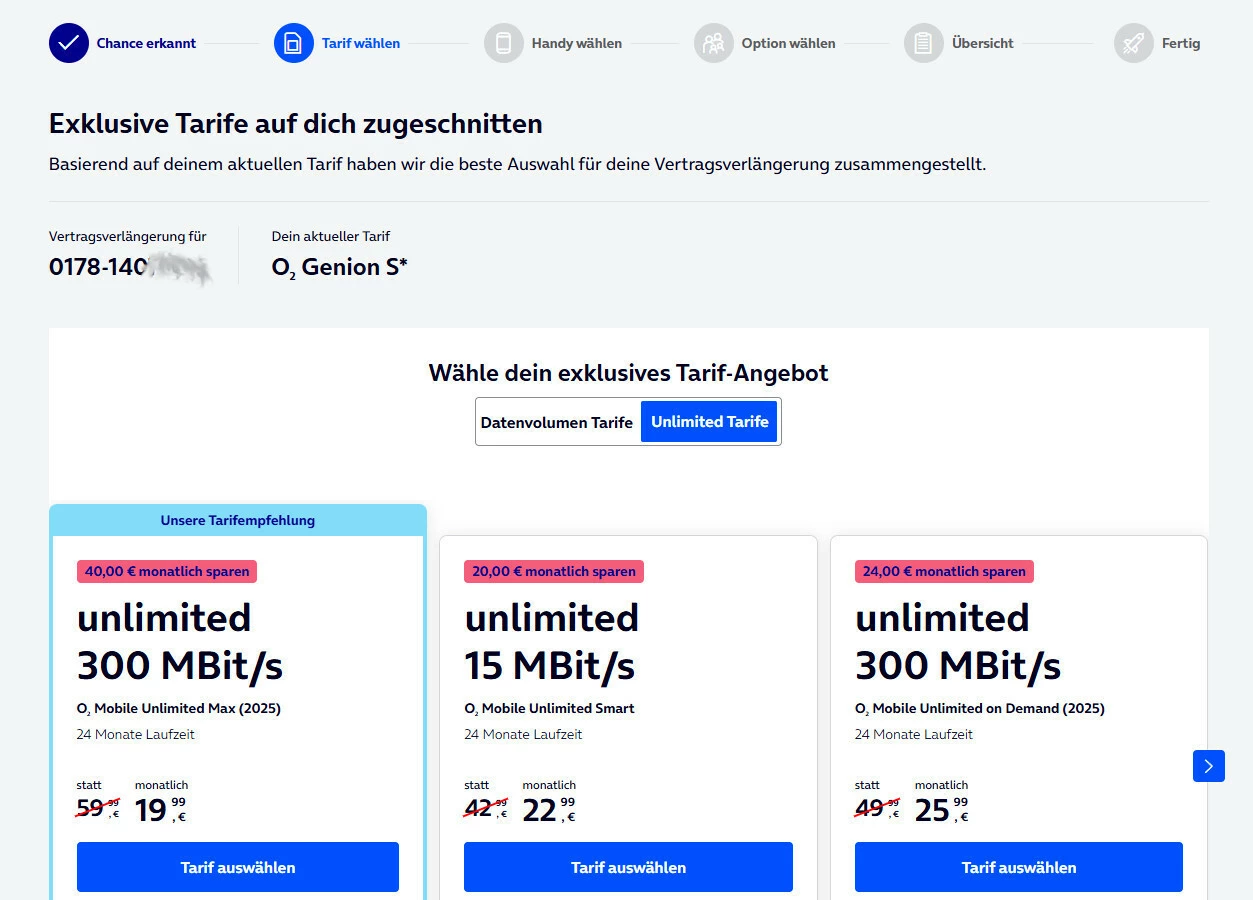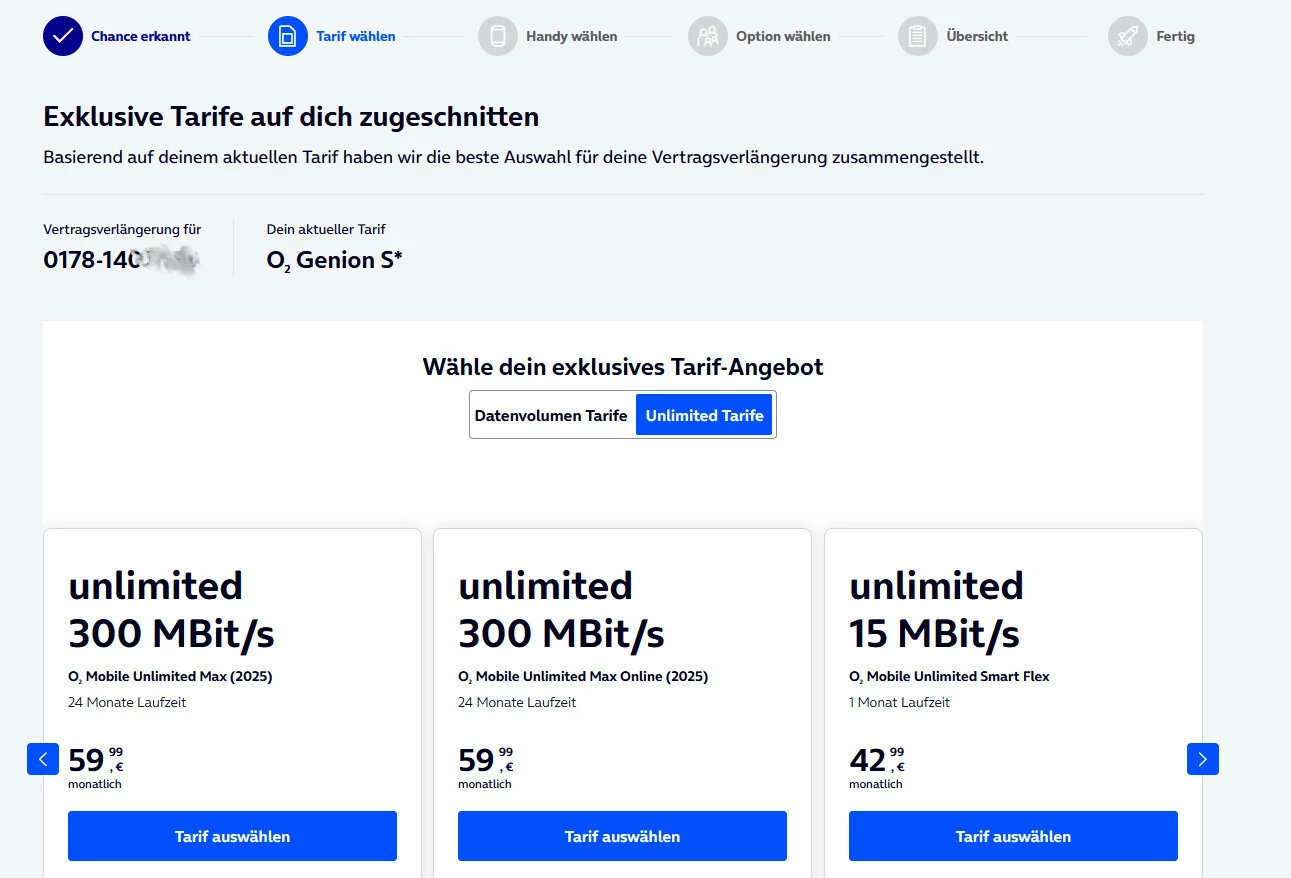 3. Auswahl des Tarifs „O2 Unlimited Max (2025)“