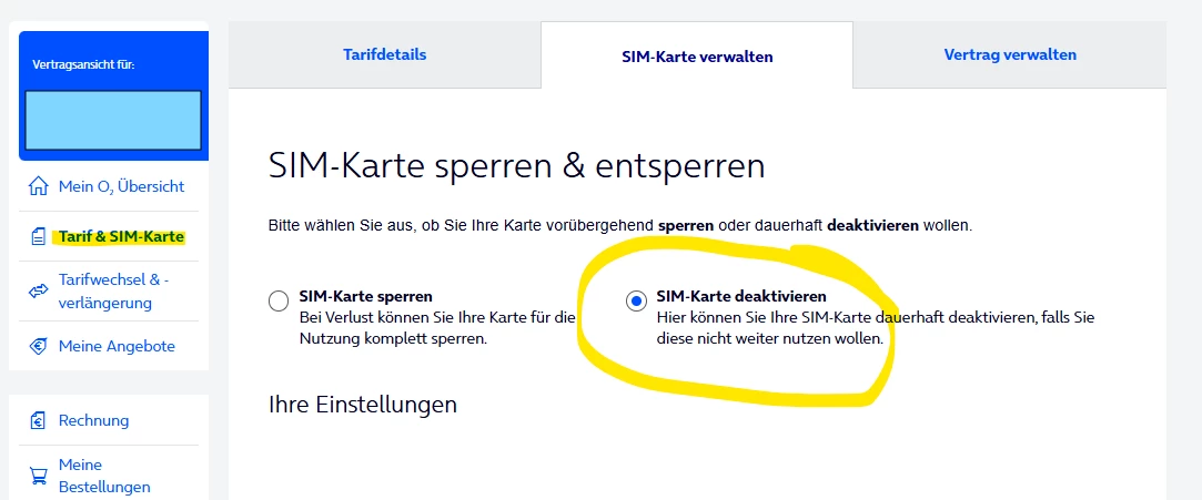Habe es paar mal versucht auf löschen zu klicken. Aber die Sim ist immer noch aktiviert.