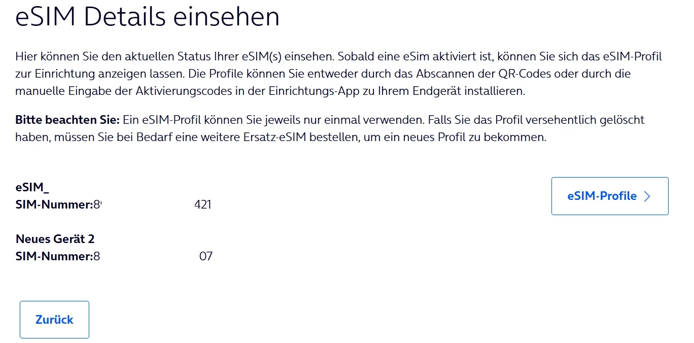 Ich habe gesehen, dass dir das eSIM Profil inzwischen auch per Post zugesendet wird damit du die Sim aktivieren kannst.