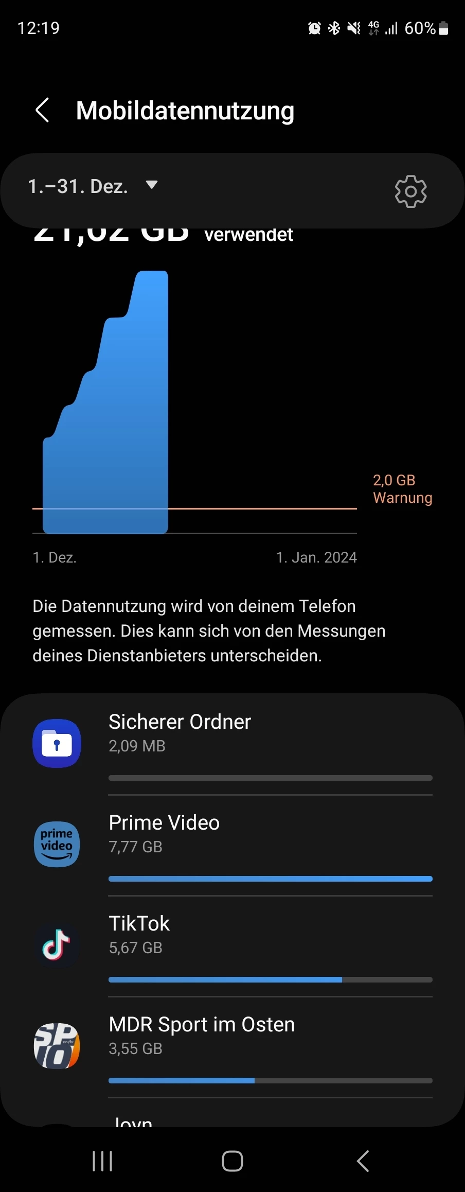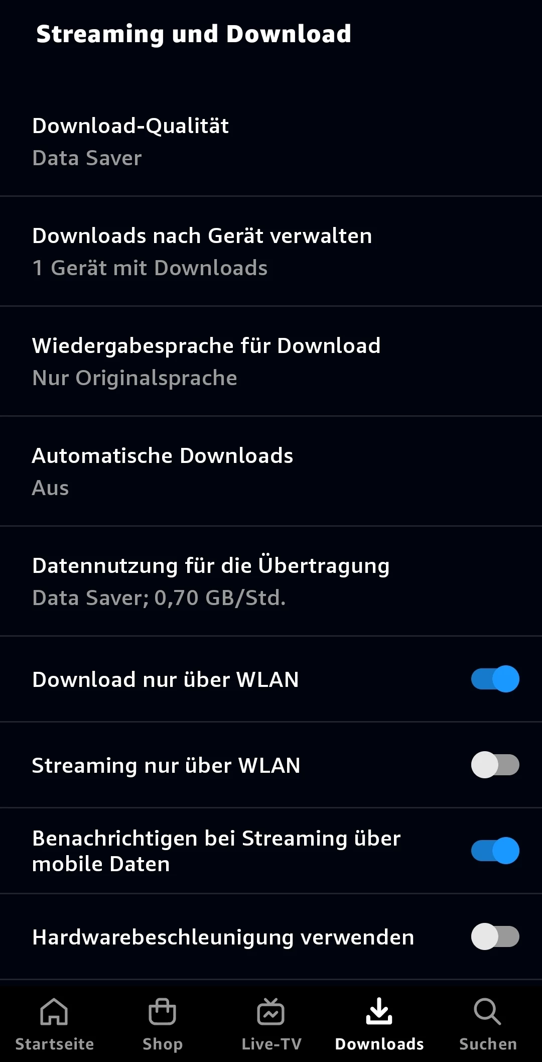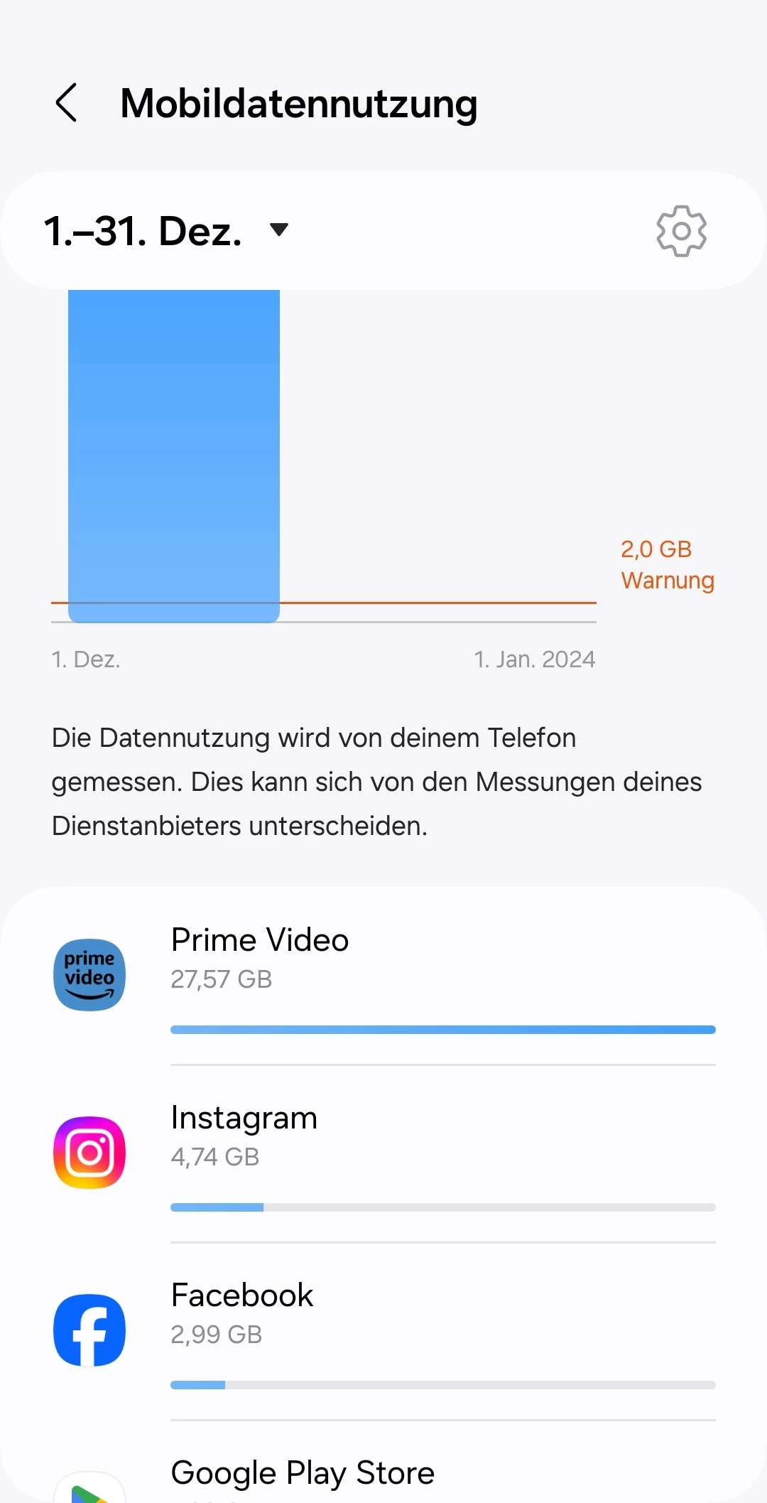 Hast du in der Prime-App den Datenverbrauch eingestellt? Welche Info gibt dein Smartphone zum Datenverbrauch?