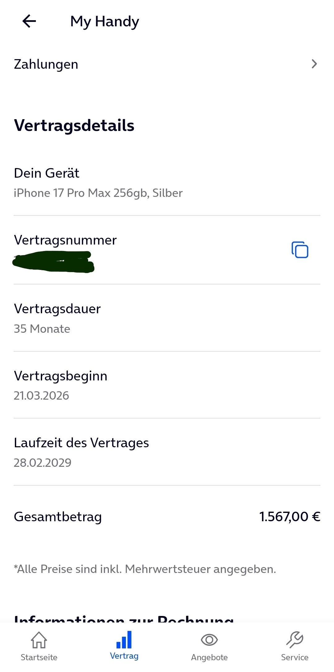 Und steht in der Vertragszusammenfassung, 24 Monate oder 36 Monate für das iPhone 17 Pro Max?