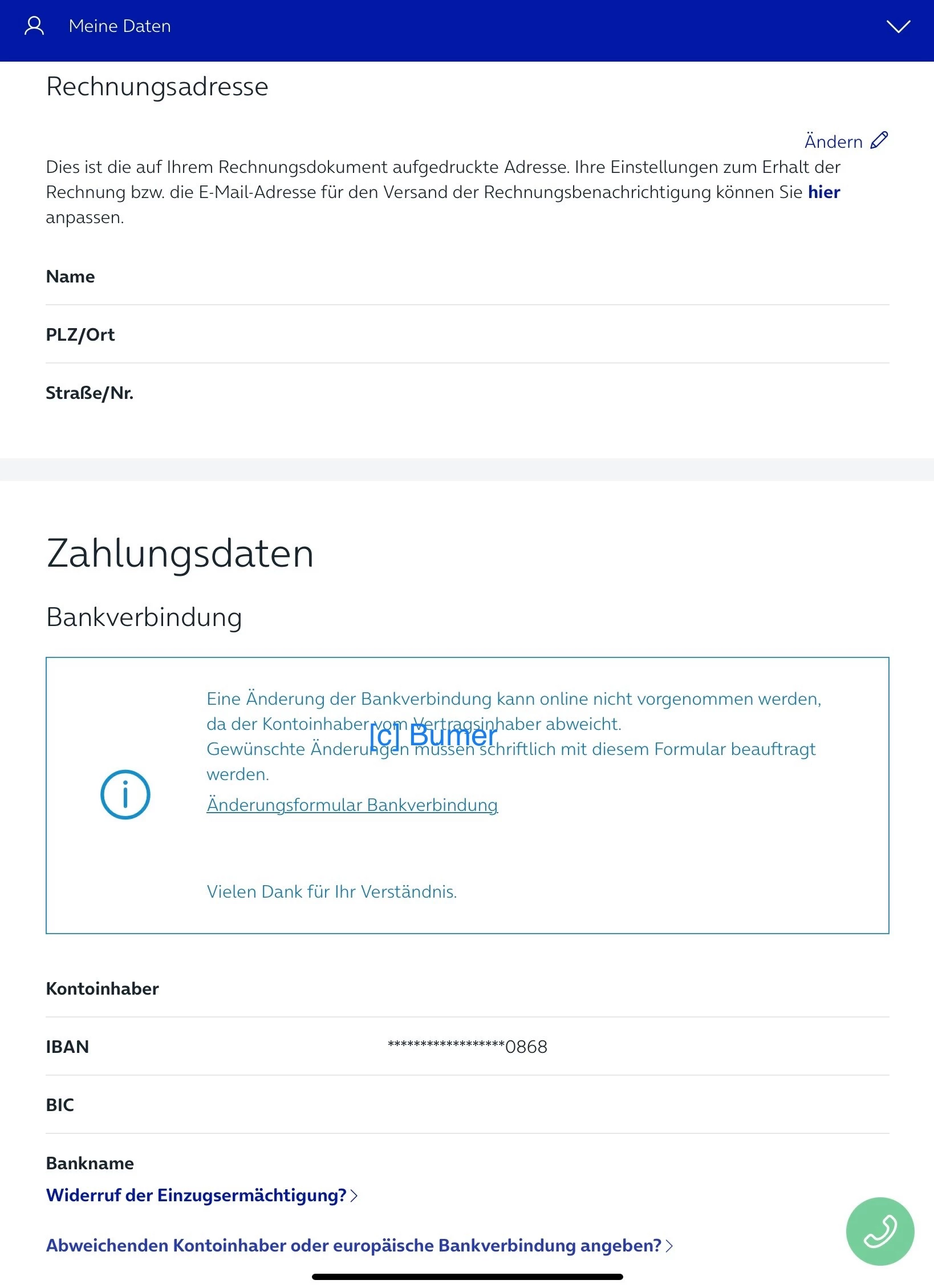 Kontoinhaber und Vertragsinhaber sind jetzt identisch und trotzdem wird angezeigt dass beide voneinander abweichen…