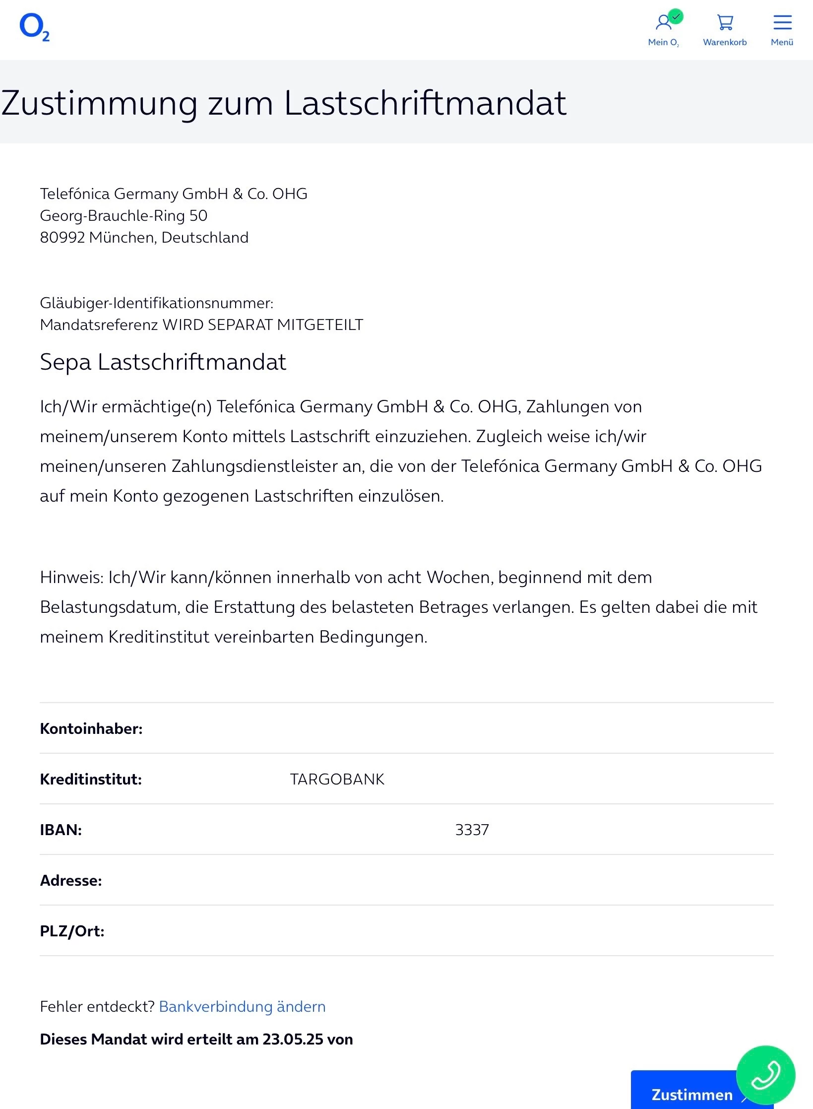 Ihr klickt auf „Weiter zur SEPA Einzugsermächtigung“ und bestätigt das Lastschriftmandat: