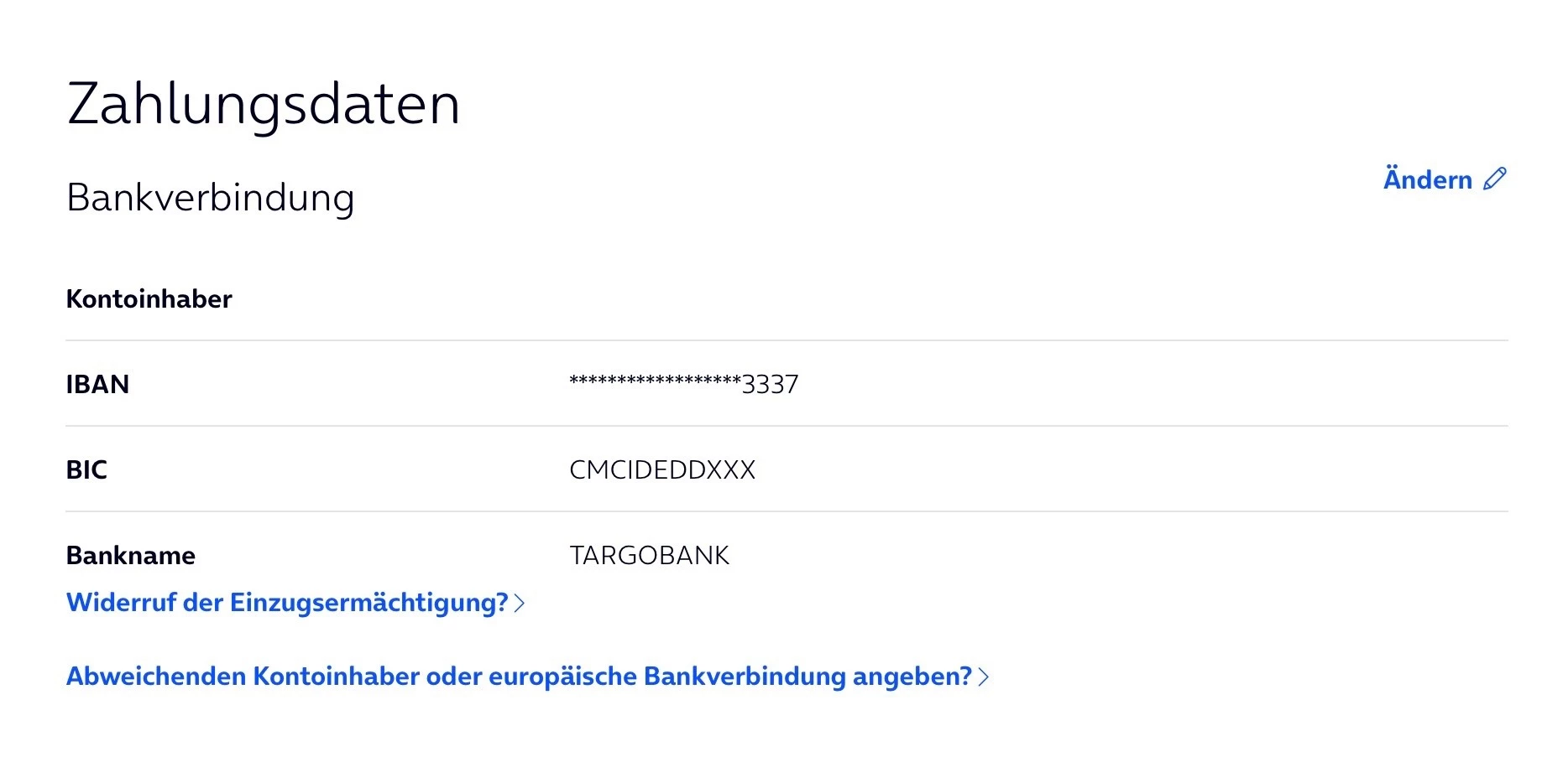 Dann schaut im Online Portal als erstes unter „Meine Daten“ nach. Ihr findet diesen Eintrag: