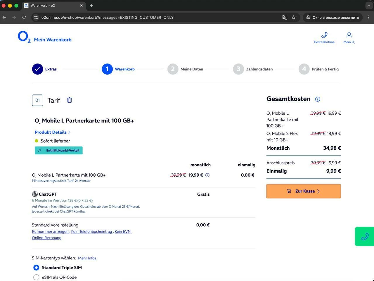 Ich versuche, einen Tarif im O2-Shop zu bestellen, aber lande in einer seltsamen Schleife: