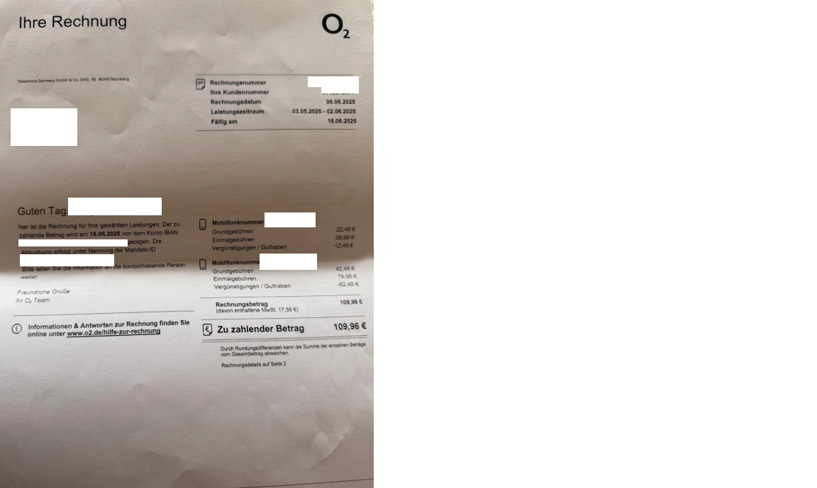 Poste bitte Seite deiner Rechnung ohne persönliche Daten