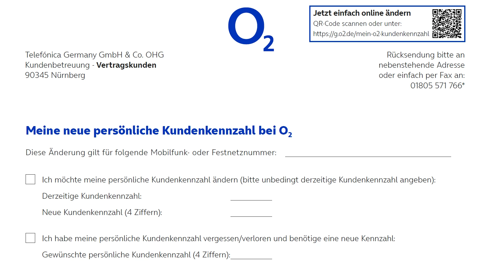Und ändere deine persönlich Kundenkenzahl PKK.https://o2online.de/assets/blobs/pdfs/pkk-aendern-postpaid,