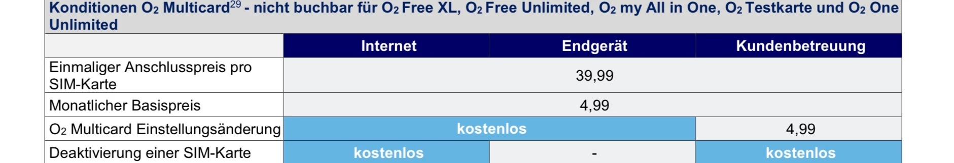 Eine Multicard ist für 4,99€ monatlich und einmalig 39,99€ möglich. Diese ist auch als eSIM Profil nutzbar.