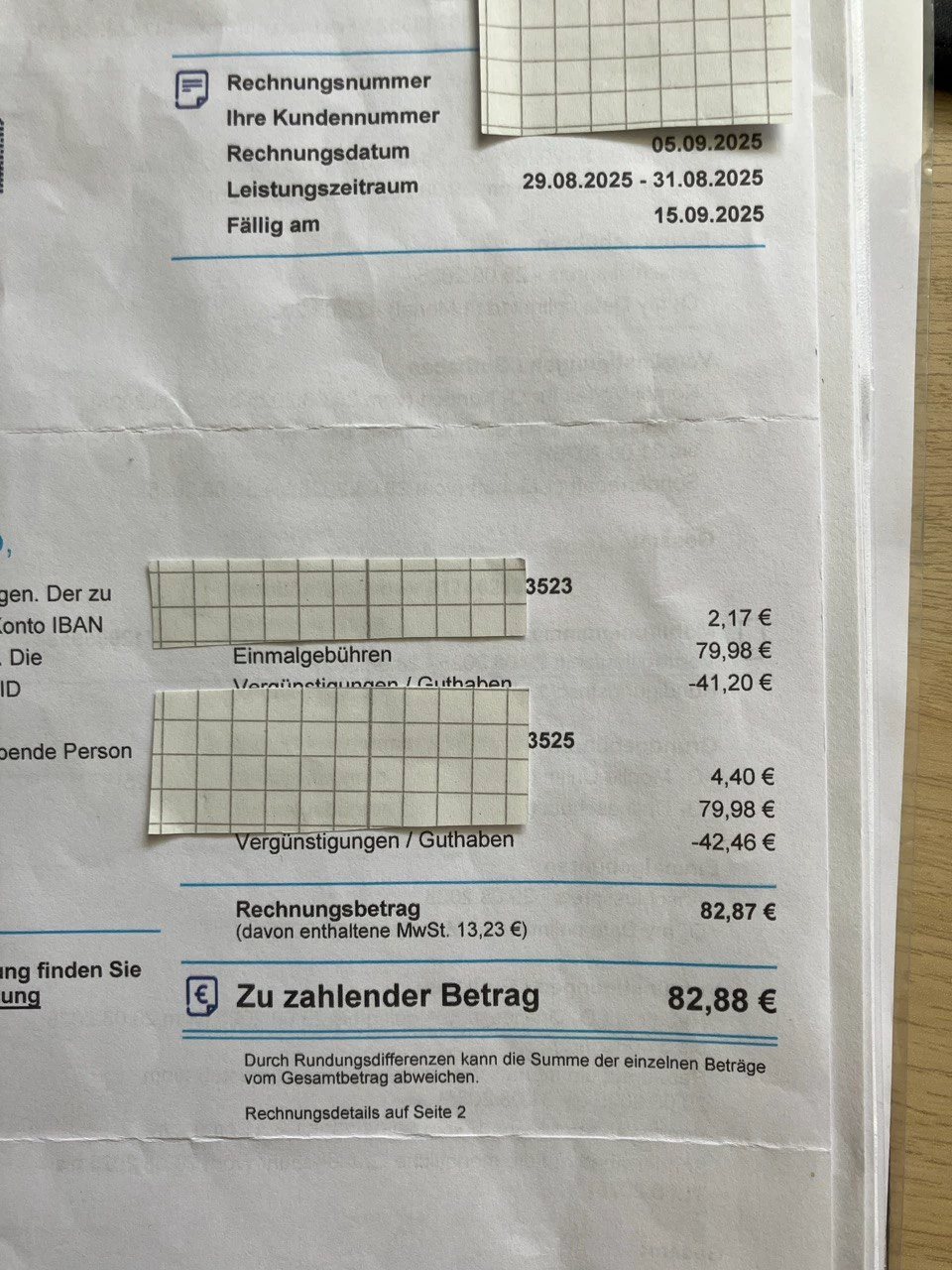 Am 10.09.25 erhielt ich per Post eine Rechnung über 82,88 Euro für zwei weitere Nummern.