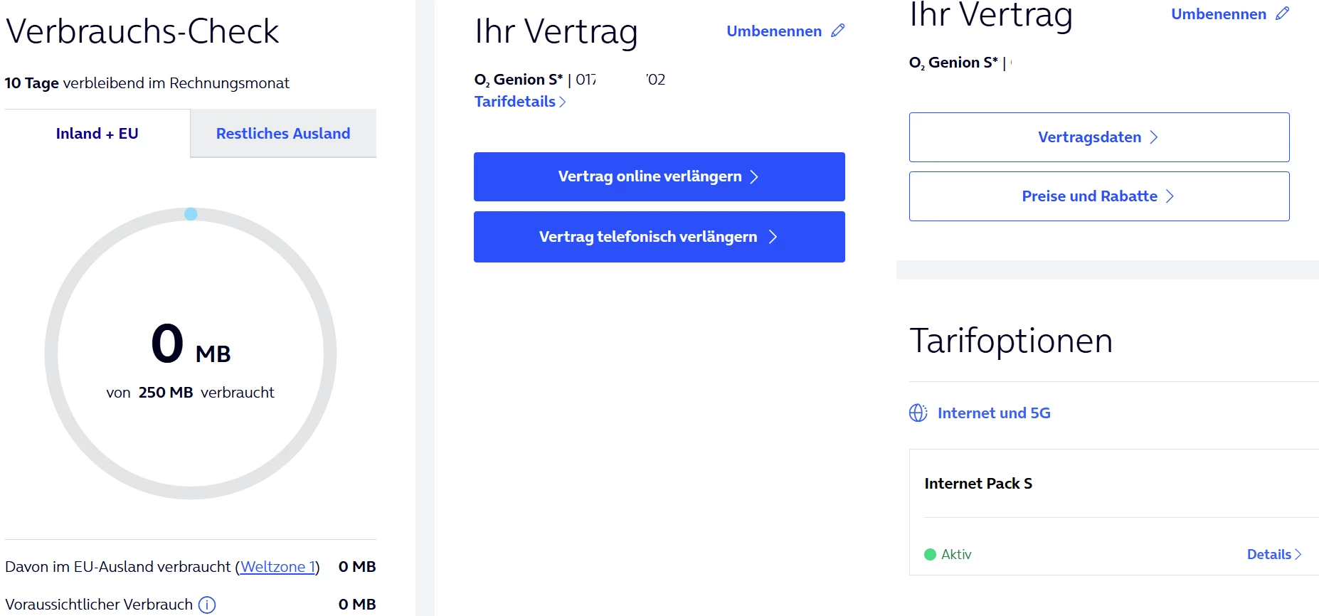 Bei Vertrag 1 steht bei mir 0 MB von 250 MB verbraucht.