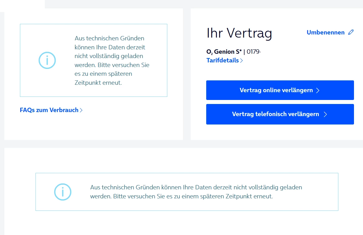 Im WebPortal steht weiterhin bei Datenverbrauch “ Aus technischen Gründen können Ihre Daten derzeit nicht vollständig geladen werden. Bitte versuchen Sie es zu einem späteren Zeitpunkt erneut.”