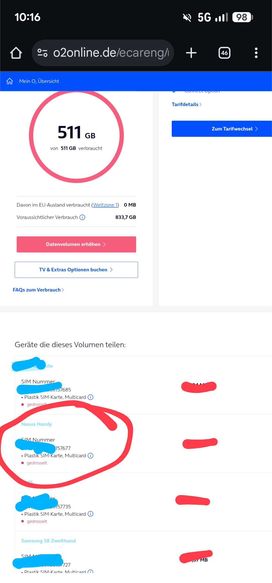 Nur die Hauptkarte läuft aktuell noch weiter. Bin gespannt wie lange. Letzten Rechnungsmonat wurde da auch gedrosselt.