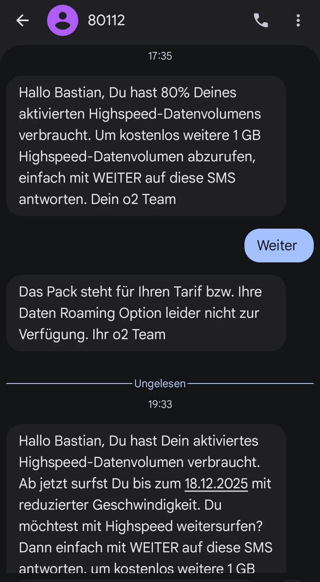 @bako22 Nur mal interessehalber… Was passiert denn, wenn du eine SMS mit „weiter“ schickst?