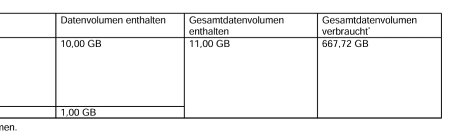 Laut Rechnung war der Verbrauch bei 667gb im letzten Rechnungsmonat und ich wurde das erste Mal nicht gedrosselt.