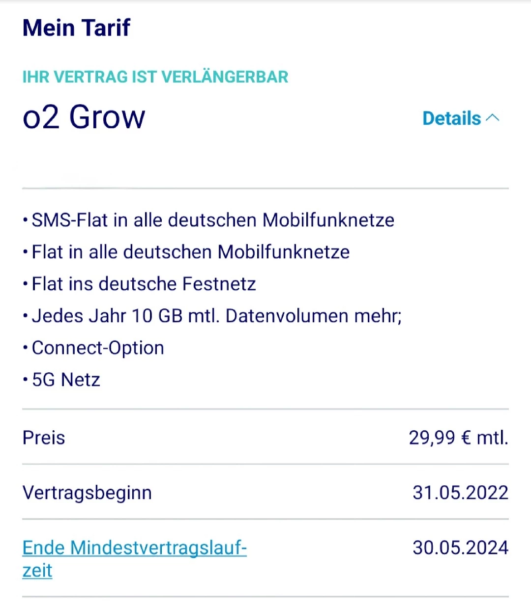 Der 31.05.22 war dein Vertragsbeginn, aber da ist nicht erkennbar ob der o2 Grow da schon aktiv war. Hast du noch die Email wo dir der Grow inklusive Datum bestätigt wurde?