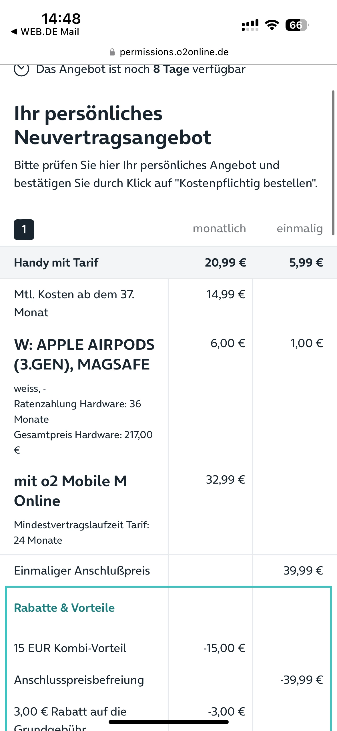 Also ich finde das schon arg unverschämt 💁‍♂️ wenn ich ehrlich sein soll. Warum erzählt man mir im Chat ich hätte eine Gutschrift für ein kostenloses Geschenk. Und bekomme dann wenige Minuten später ein Angebot zu einem neuen Vertrag und die AirPods sind dann auf einmal nicht mehr kostenlos.