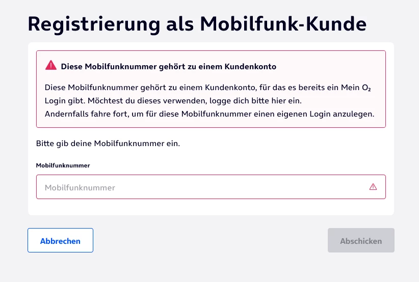 Andernfalls fahre fort, um für diese Mobilfunknummer einen eigenen Login anzulegen.