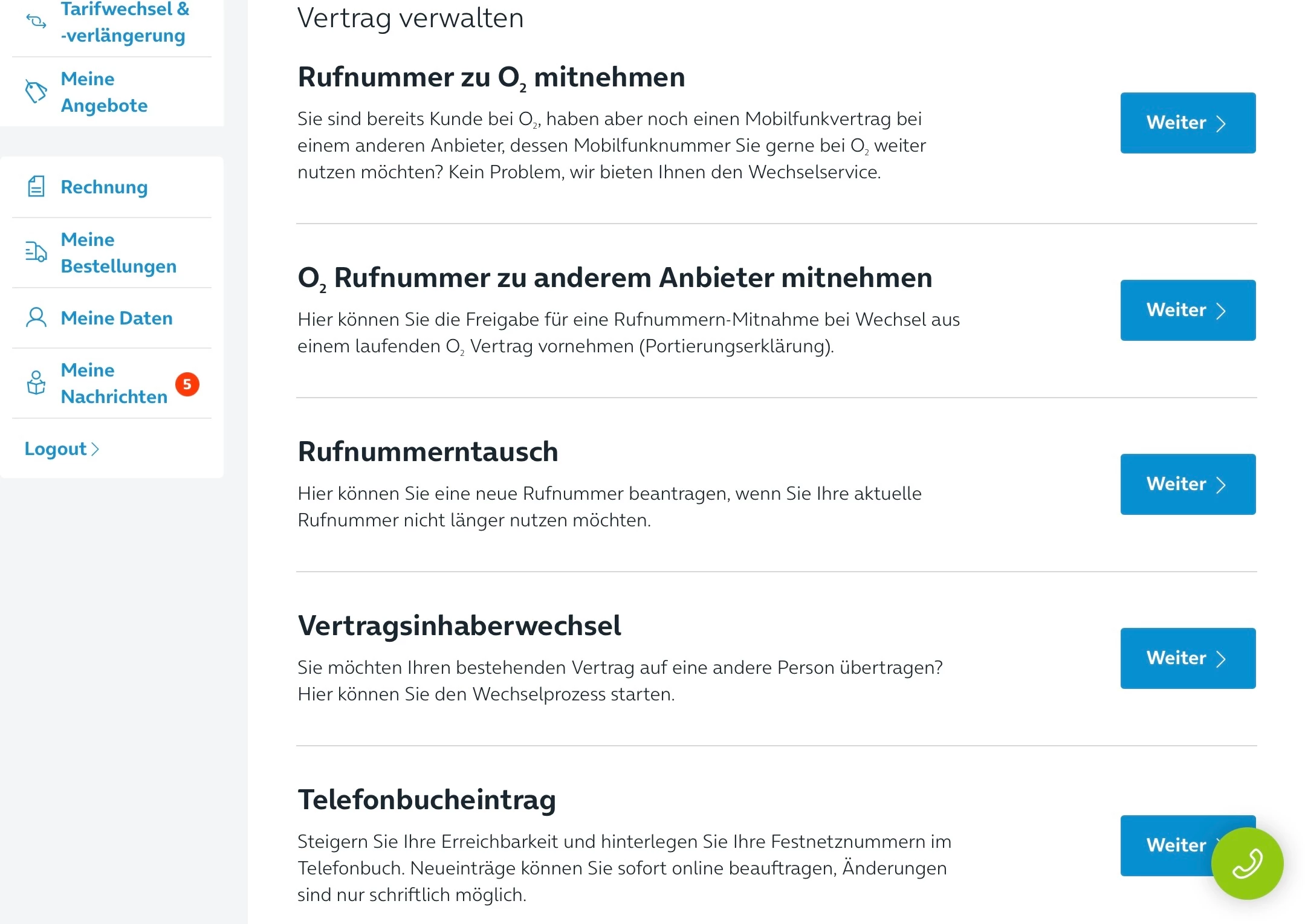 Eine Vertragsstilllegung kann in "mein o2" beauftragt werden.