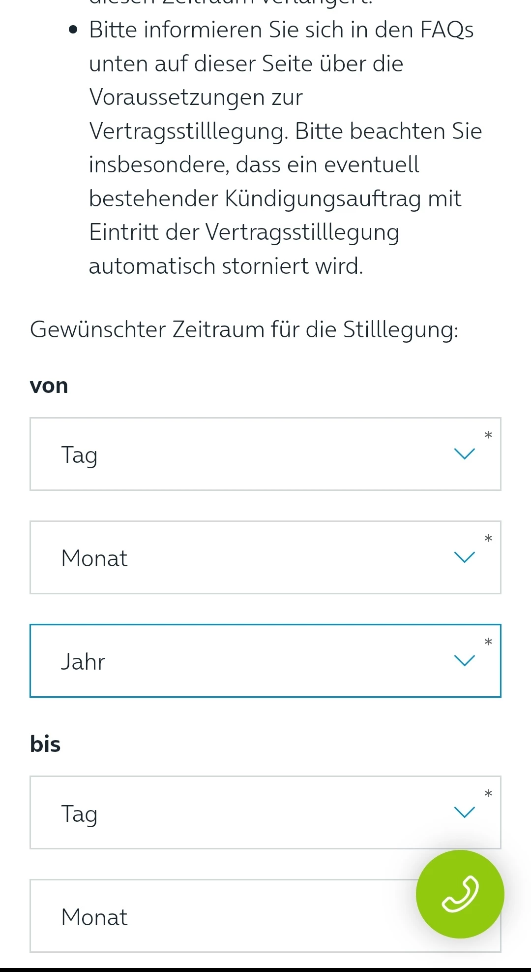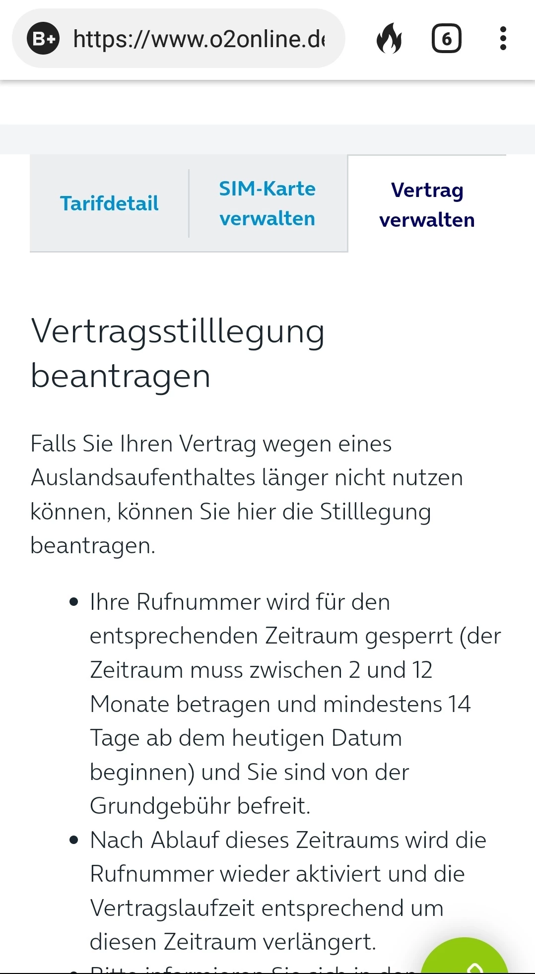 Ich möchte meinen Mobilfunkvertrag für ein paar Monate pausieren, weil ich ein Auslandssemester mache.