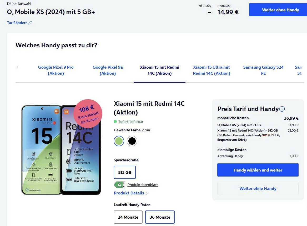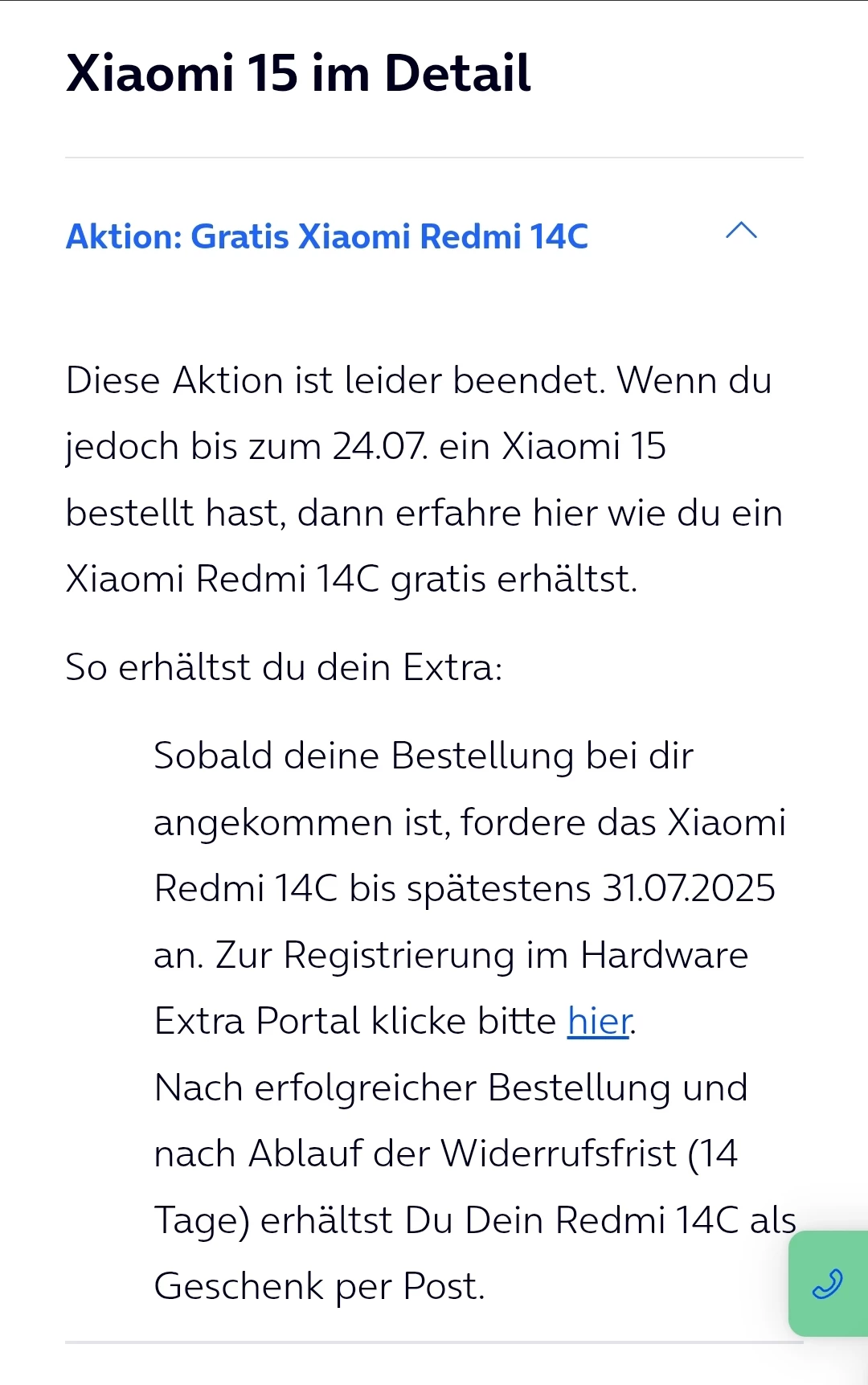 Ich habe meinen Vertrag im Rahmen einer Aktion (xiaomi15 mit redmi 14) verlängert.