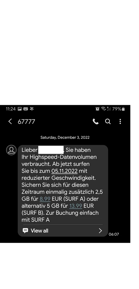 high-speed Datenvolumen verbraucht obwohl 1GB übrig