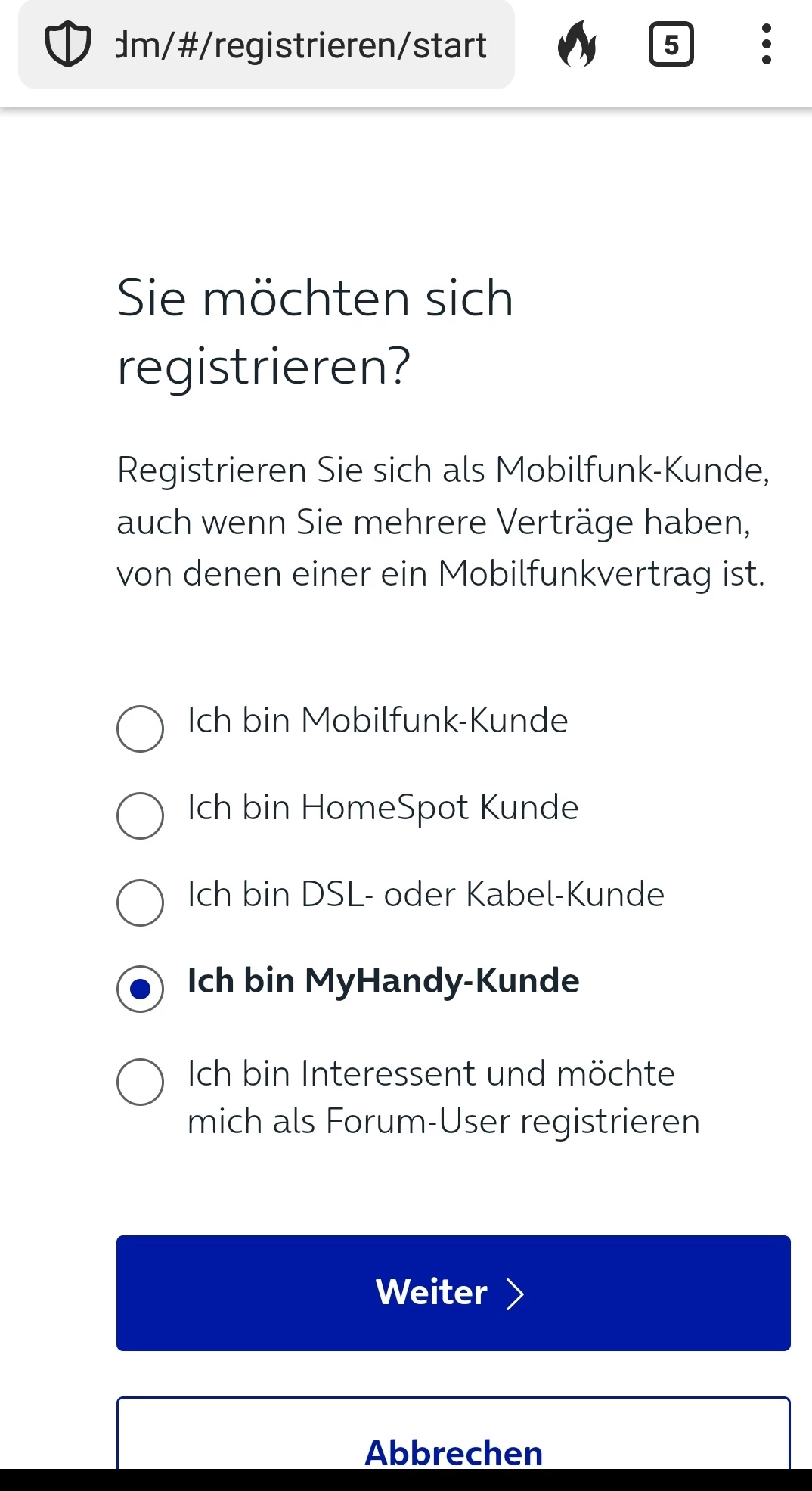 Beim Registrieren gibt es mehrere Optionen zur Auswahl:ch bin Mobilfunk-Kunde(ich habe keine),ich bin HomeSpot Kunde,ich bin dsl oder kabel,ich bin MyHandy-Kunde, ich bin interessent und möchte mich als Forum-User registrieren.Nachdem ich den letzten Punkt ausgewählt habe, muss ich ein Feld mit meiner E-Mail-Adresse ausfüllen, und dann muss ich auf eine SMS warten, die nicht ankommt. Bitte erkläre, wo genau ich meine Kontonummer eingeben soll.