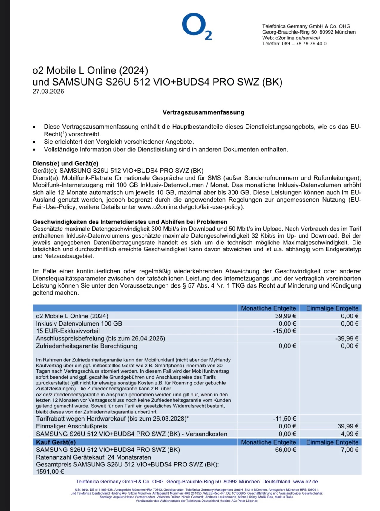 Ich habe vor zwei Jahren zusätzlich zu meinem Tarif ein Handy gekauft und in zwei Monaten endet meine Vertragslaufzeit. Deshalb habe ich über den Bereich ‚Angebote‘ einen neuen Tarif abgeschlossen und die Option für 79 € monatlich für 24 Monate mit dem Samsung Galaxy S26 gewählt. Allerdings weiß ich Folgendes nicht: Wann wird der neue Tarif aktiv und wird mein alter Tarif automatisch gekündigt
