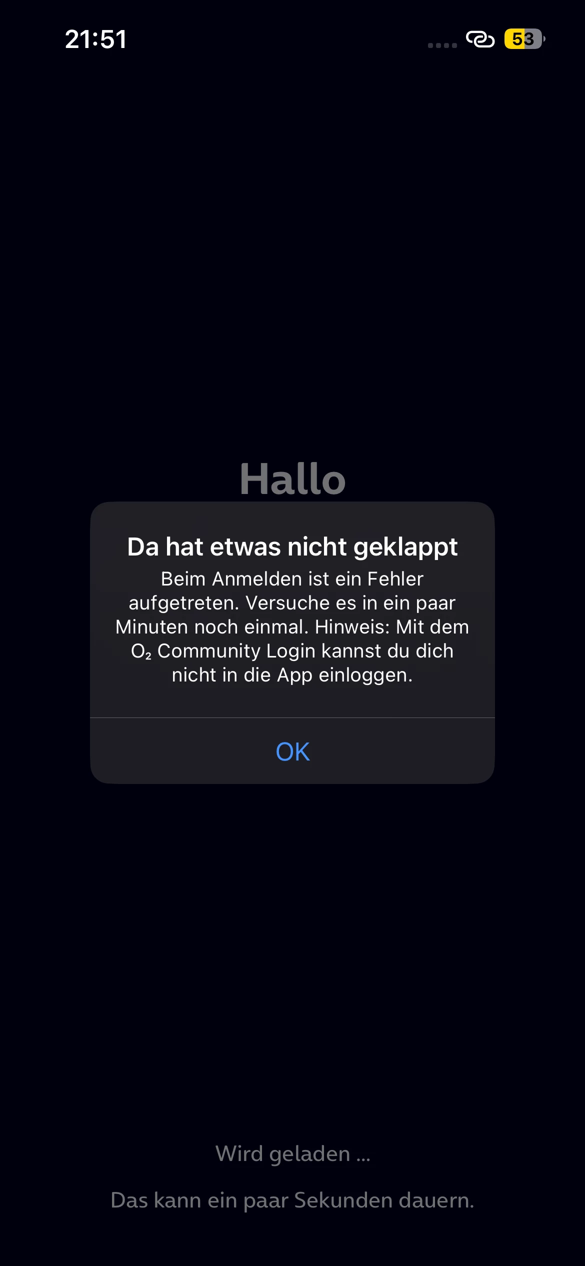 wenn ich mich bei der app anmelden will kommt das.