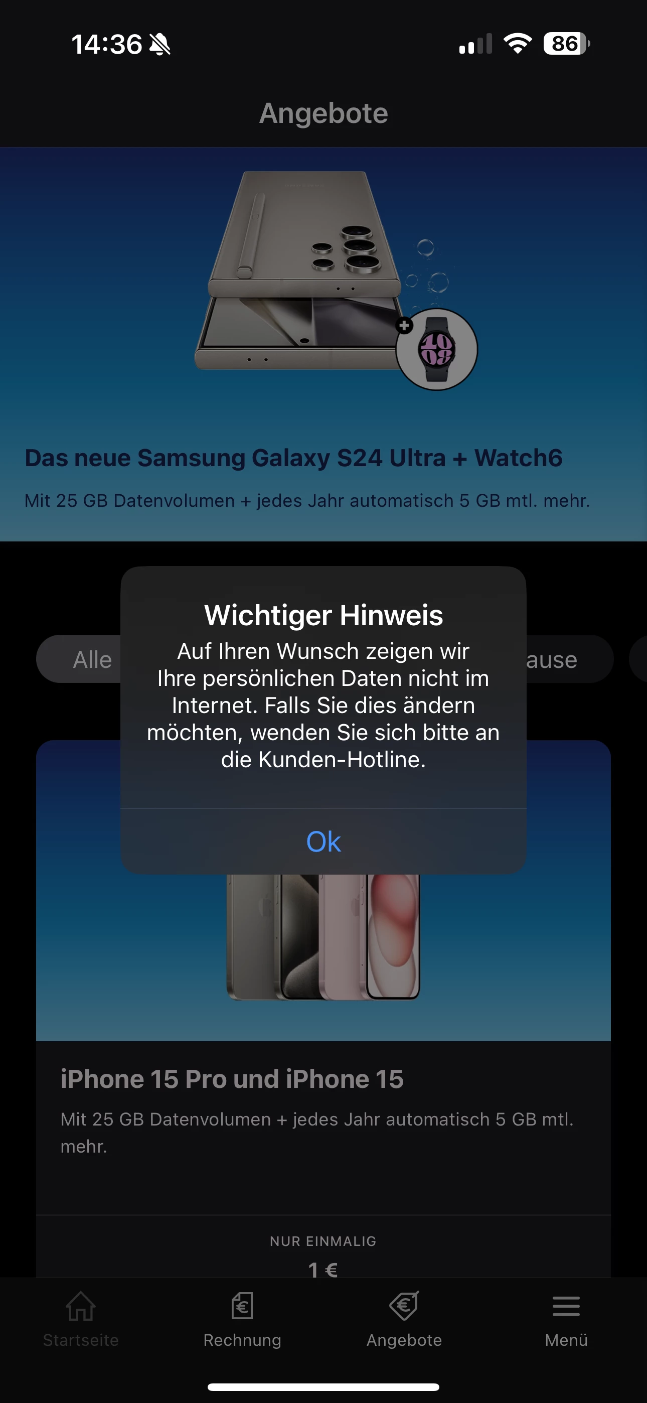 ich wollte mich gerade in mein Online Login Portal einloggen und aufeinmal steht da wenn ich auf Startseite klicken will oder auf meine Handynummern genau das: