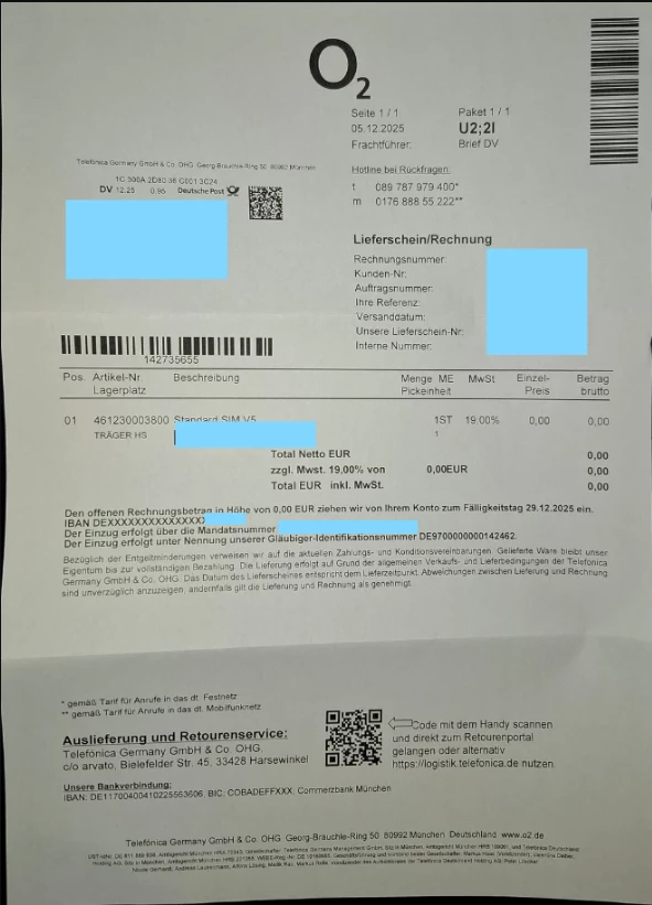 Ich habe eine neue SIM-Karte per Post erhalten, die ich nicht benötige und daher nicht aktiviert habe.