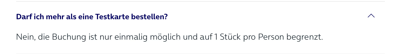 tatsächlich ist es nicht möglich, eine zweite Testkarte auf denselben Namen zu bestellen.