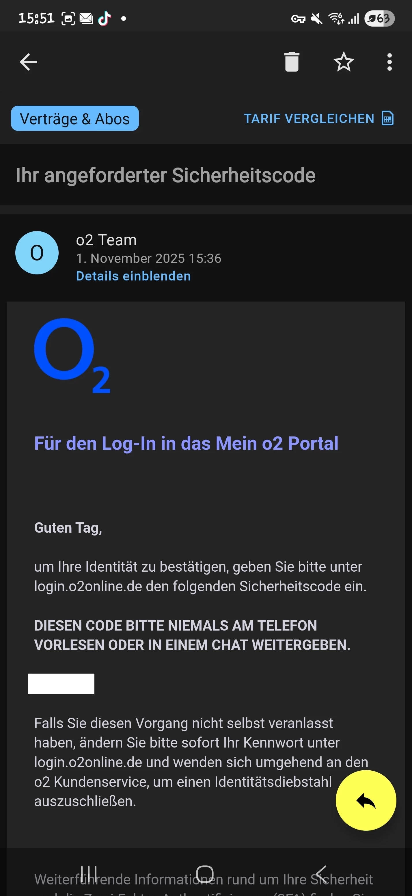 Ich bekomme in letzter Zeit regelmäßig E-Mails von o2 mit einem Sicherheitscode für den Login ins Mein o2 Portal. Ich selbst habe den Code aber gar nicht angefordert.