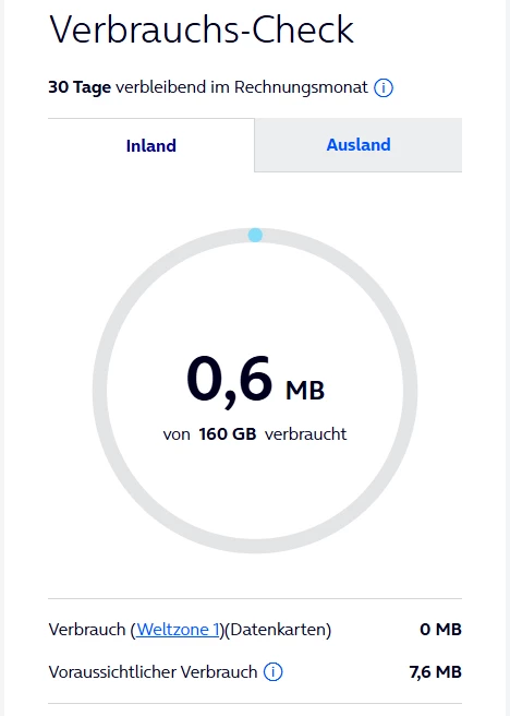 Dann wirst du vom 10. eines Monats bis zum 9. des Folgemonats berechnet. Und der Zähler ist in der letzen Nacht wieder auf 0 MB gesprungen. Da passt dann auch der voraussichtliche Verbrauch.