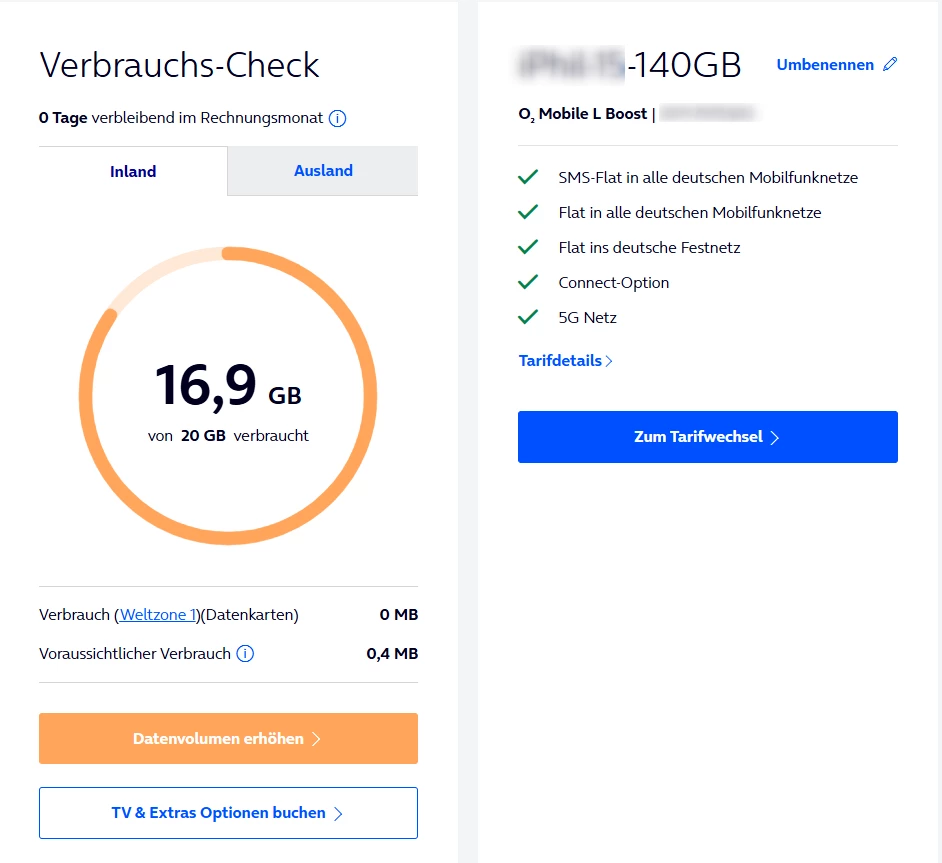 ich bin ja einiges gewohnt .. auch das Anrufe, Datenverbrauch und Co nur wilde Fantasiezahlen enthalten aber dass ein 140GB Vertrag, der gerade mit Growoption 160GB sein sollte, auf einmal ein fast verbrauchter 20 GB Tarif ist .. von dem 16,9GB verbraucht sein sollen, ist schon .. ein wenig kurios.