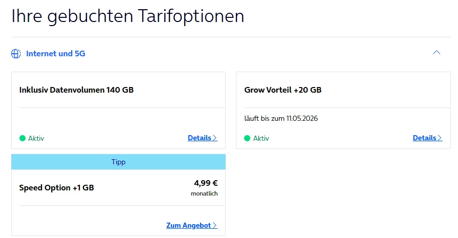 Es wird der Grow Vorteil angezeigt im Verbrauchskreis. Sobald der verbraucht ist siehst du einen neuen Verbrauchskreis mit 140GB.