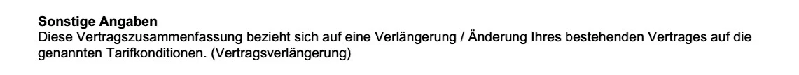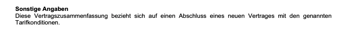 und vorab eine Vertragszusammenfassung, was steht in dieser unter Sonstige Angaben?